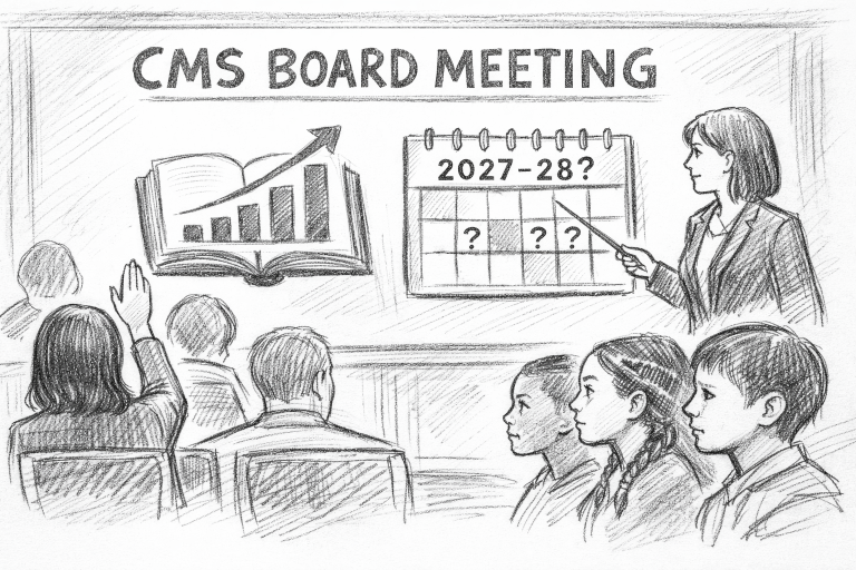 CMS leaders outlined 3–5 reading progress targets, named new school leaders, and launched a community survey for two 2027–28 calendar options after a virtual Board meeting.