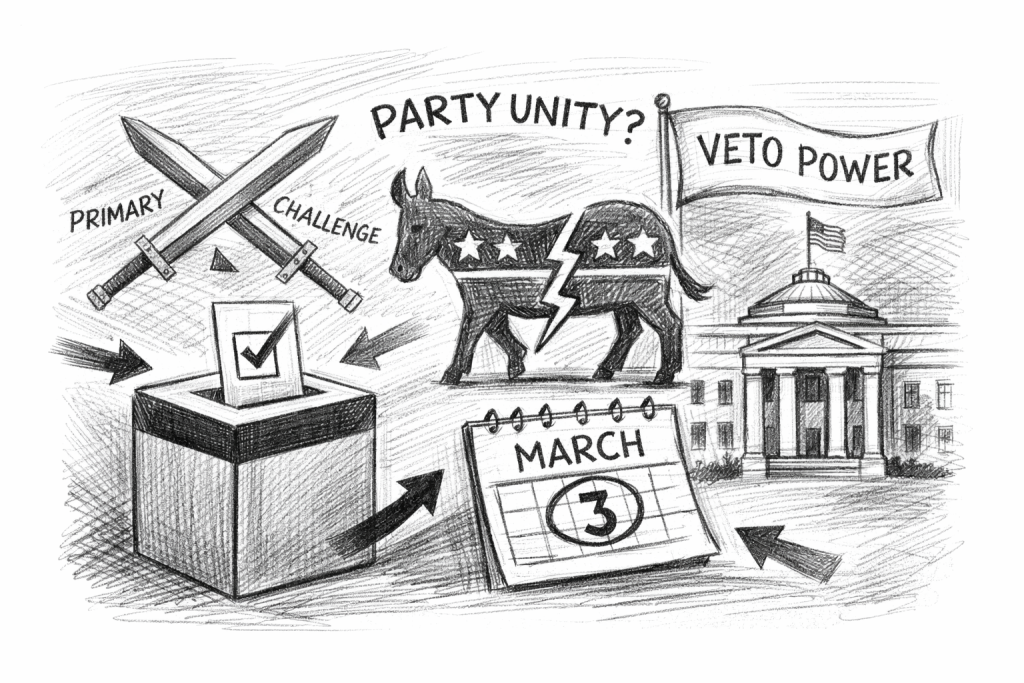 electionsGovernor endorses challenger to 7-term Charlotte incumbent who votes with GOP 84% of time. March 3 primary will decide whether Democrats can restore veto power.