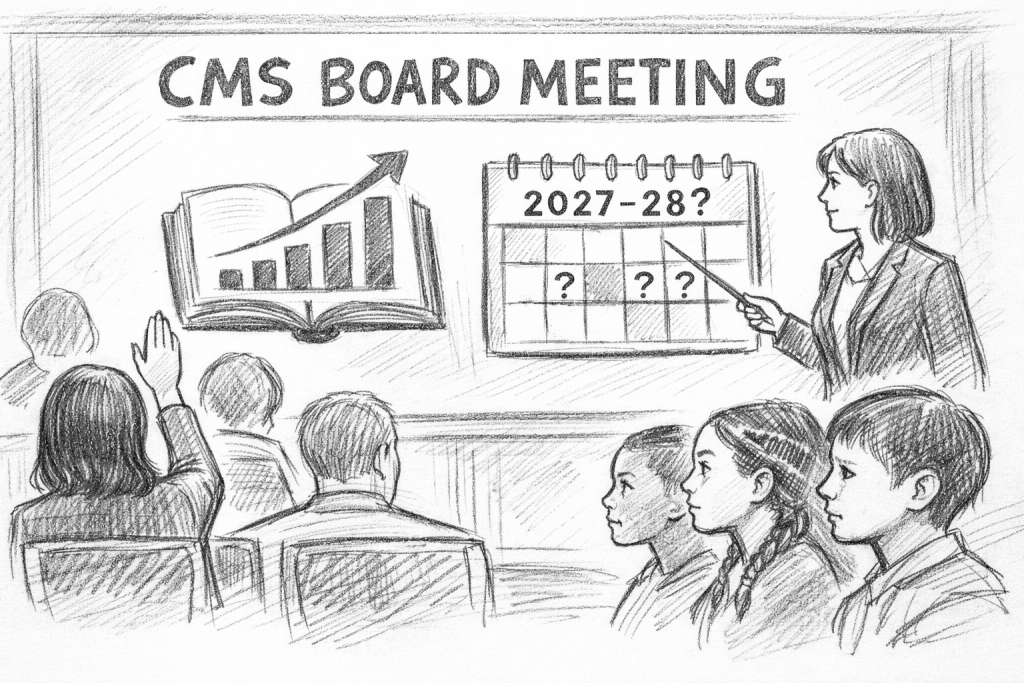 educationCMS leaders outlined 3–5 reading progress targets, named new school leaders, and launched a community survey for two 2027–28 calendar options after a virtual…