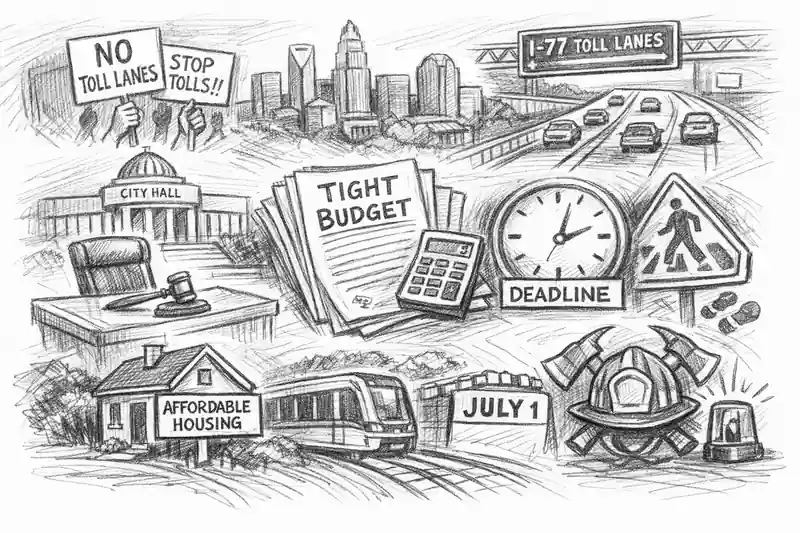 Charlotte City Council spent Q1 2026 juggling a razor-thin budget, a toll lane revolt, affordable housing policy, and a transit authority handoff with a July deadline.